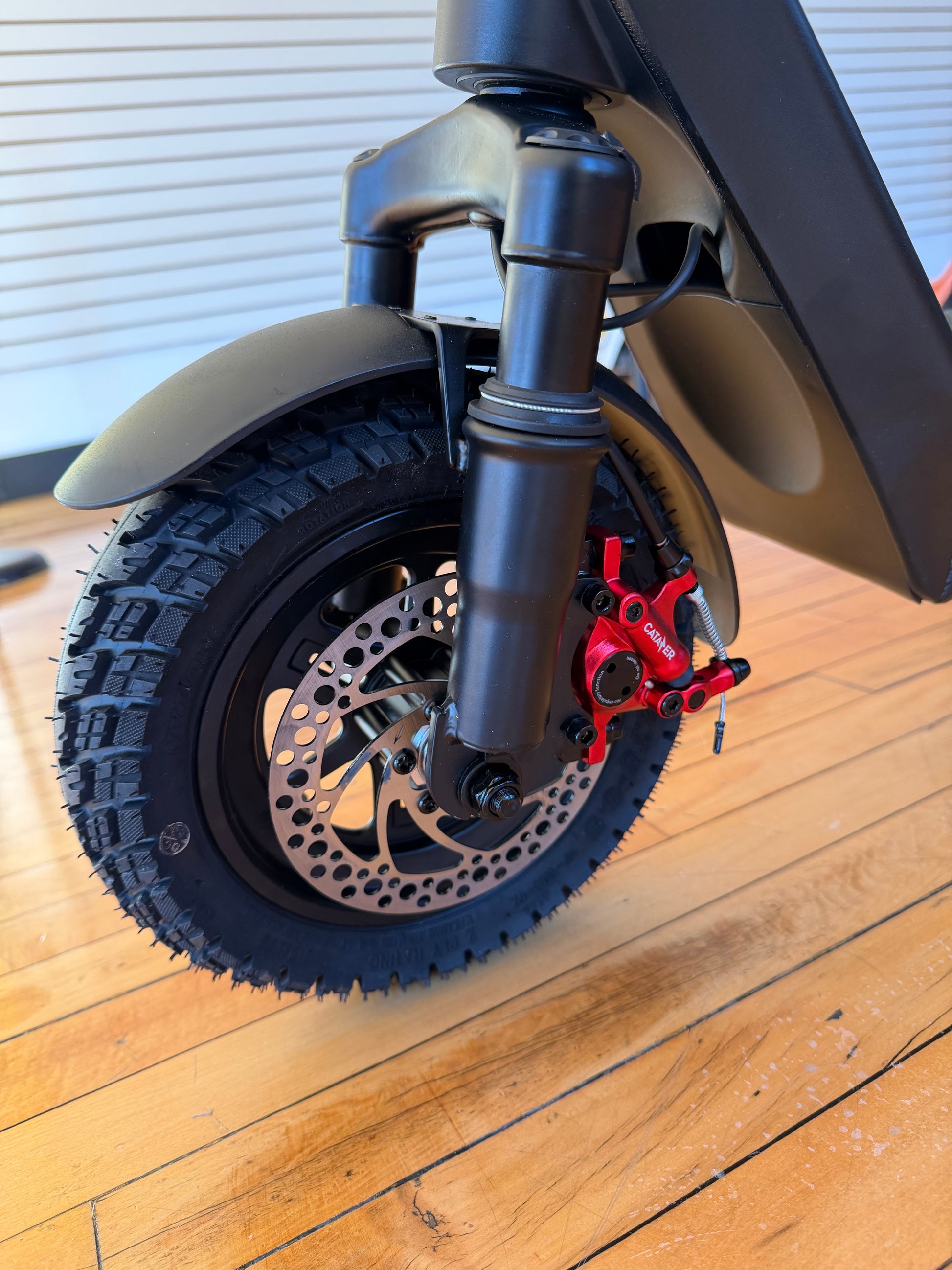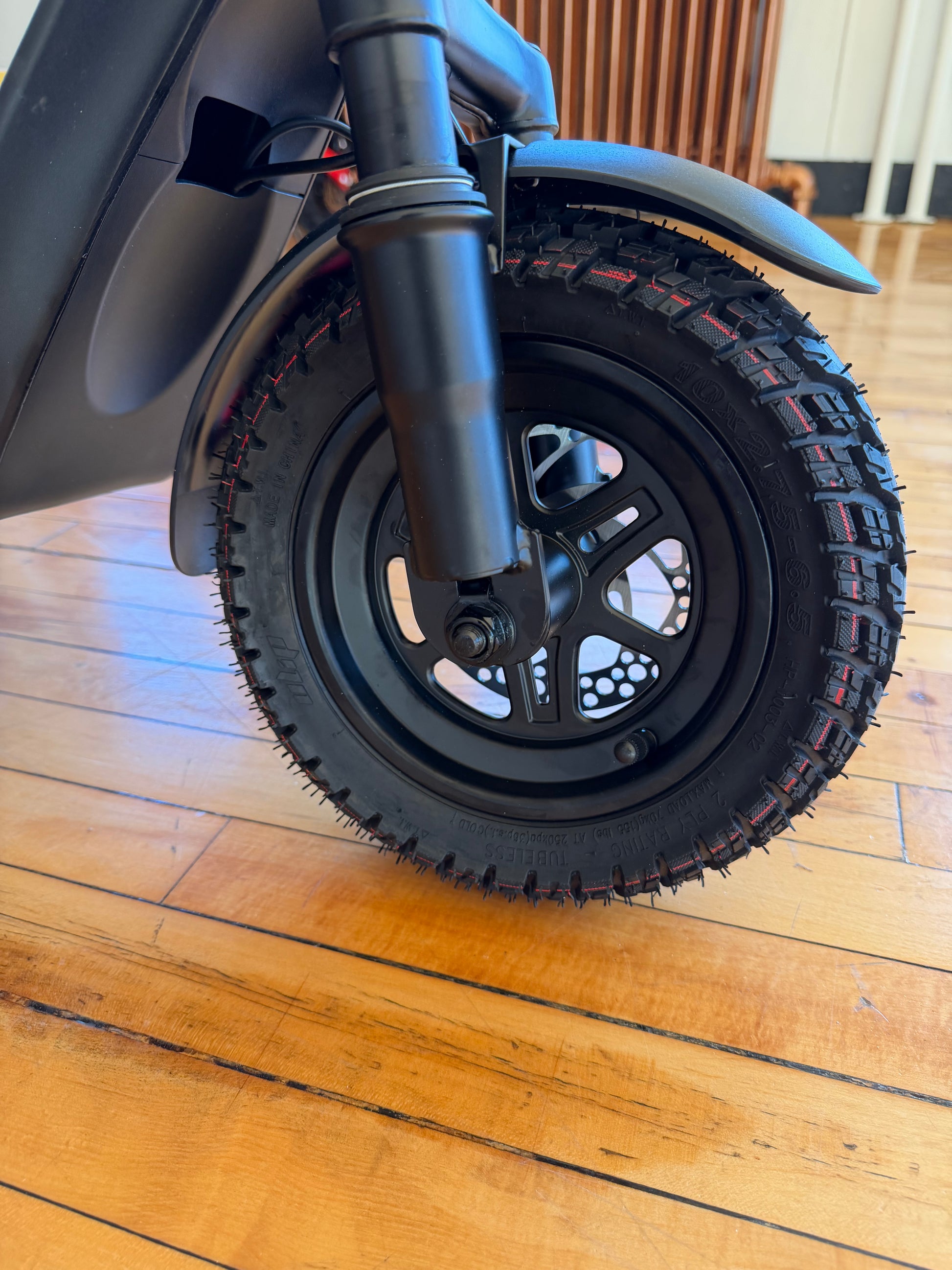 - 10 inch Shock Absorbing Off-Road/On-Road tubeless tires